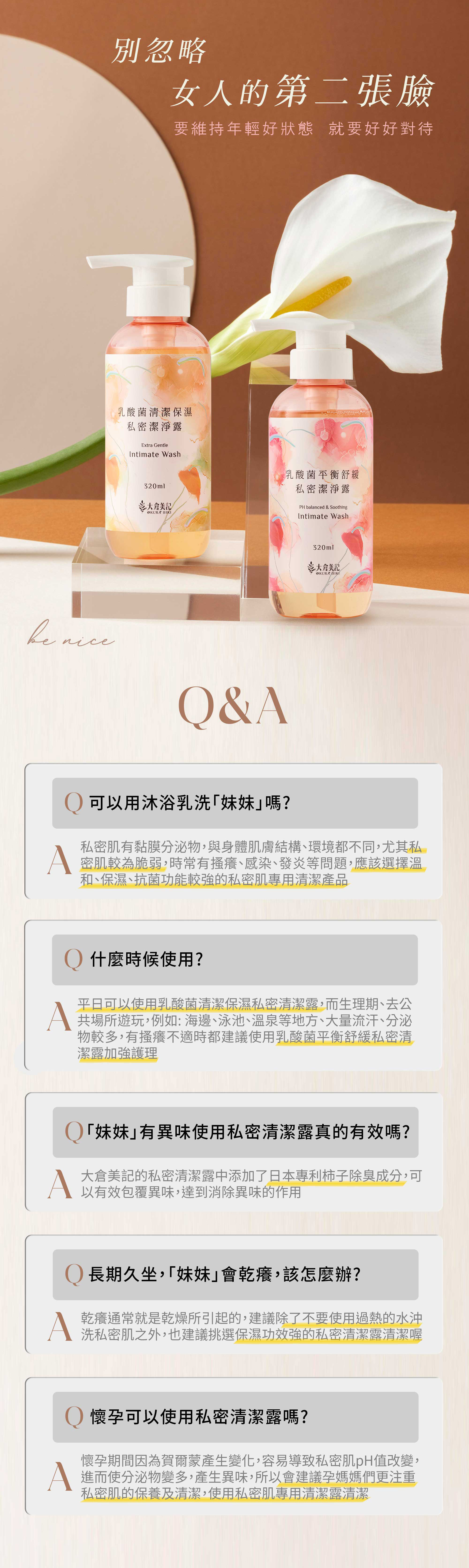 ✅pH3.5-4.5,添加乳酸菌及益生菌,弱酸護理,維持私密肌健康